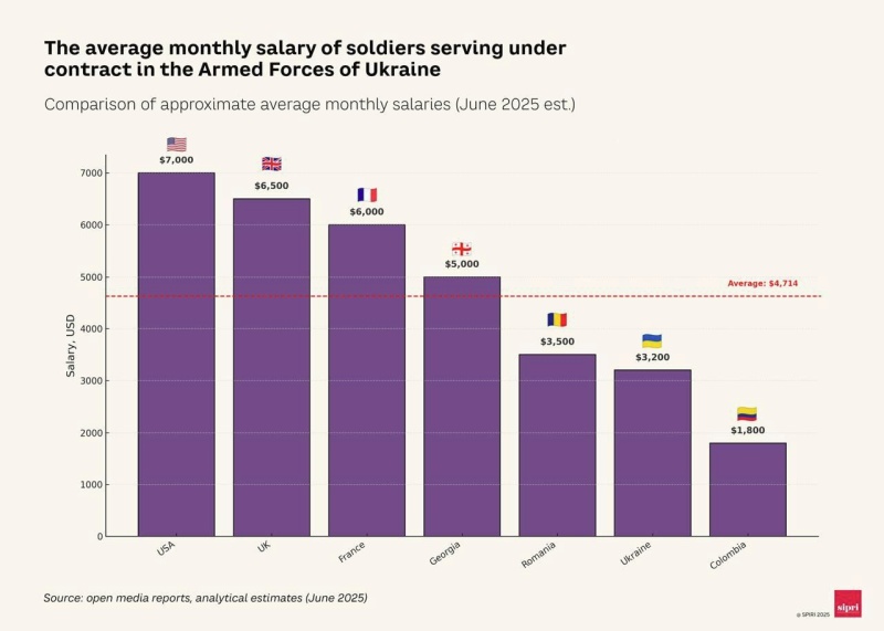 Согласно статистике о среднемесячной заработной платы солдат, проходящих службу по контракту в ВСУ, самая минимальная у колумбийских наёмников.