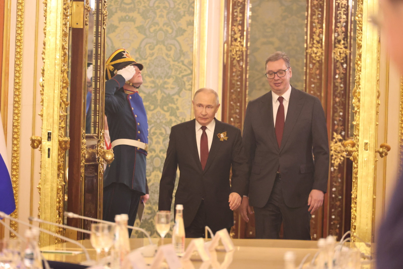Владимир Путин провел встречу с Александром Вучичем 9 мая. В ходе общения с сербским гостем он подчеркнул, что РФ высоко ценит независимый и суверенный курс Сербии в международных делах. Владимир Путин также выразил признательность Александру Вучичу за то, что он приехал в Москву на парад в честь 80-летия Победы в Великой Отечественной войне, несмотря на все создаваемые европейскими коллегами препятствия. Александ Вучич сообщил, что 9 мая в ходе встречи с президентом РФ стороны провели переговоры по поводу нового долгосрочного договора о газоснабжении Сербии.